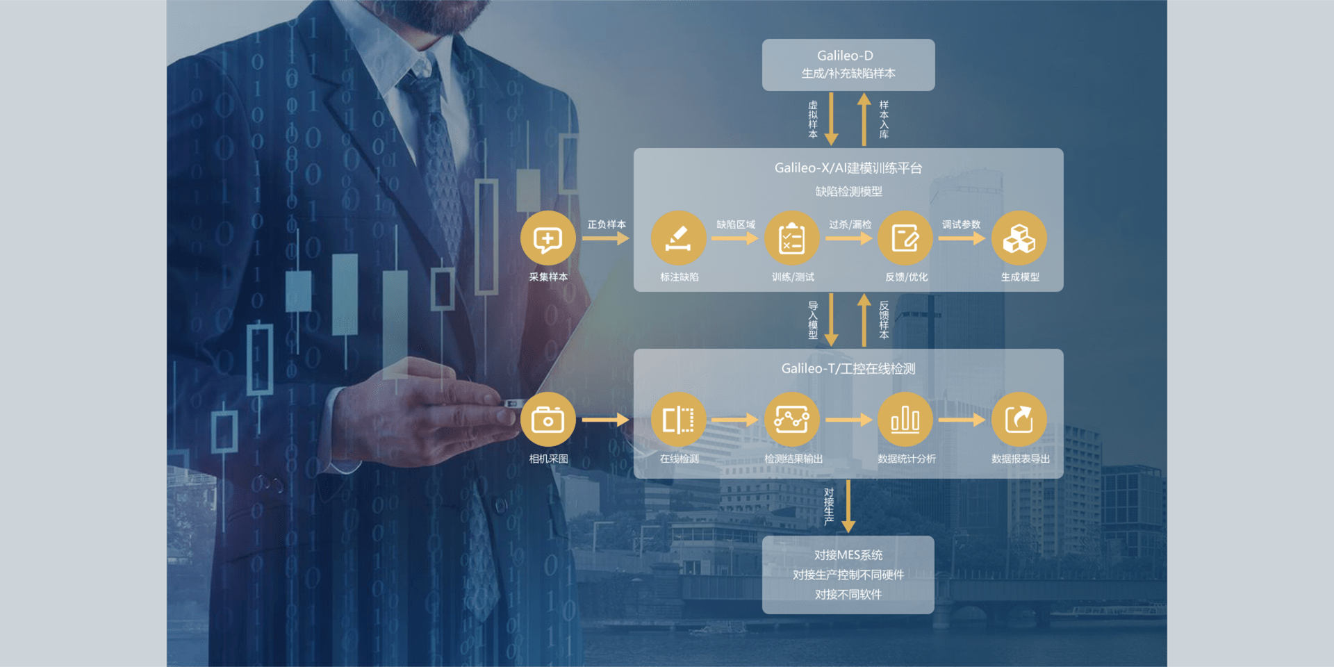 Based on the application scenarios of fast deep learning technology in industrial vision and industrial defect detection, we launched "Galileo" series of software products.This series of products will be "AI deep learning algorithm, model training, model testing, online detection and analysis, data analysis report, automatic generation of defects, cloud deep learning service, AI customized algorithm" and other one-stop implementation.Different functional modules and different products can be selected according to the different needs of customers' actual use scenarios |
